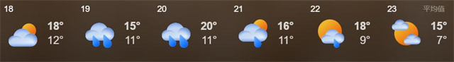 展期天氣:平均最高溫度17℃,最低氣溫11℃,伴有陣雨,請帶合適衣物及便捷雨具。