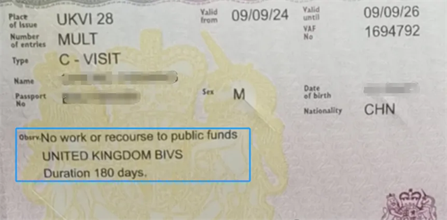 目前英國訪客簽證,默認簽發2年有效期的多次入境簽證,每次停留最多不能超過6個月,則此簽證上正常都會帶有UNITED KINGDOM BIVS即“英國-愛爾蘭簽證體系”,表明持有此簽證也可以入境愛爾蘭。